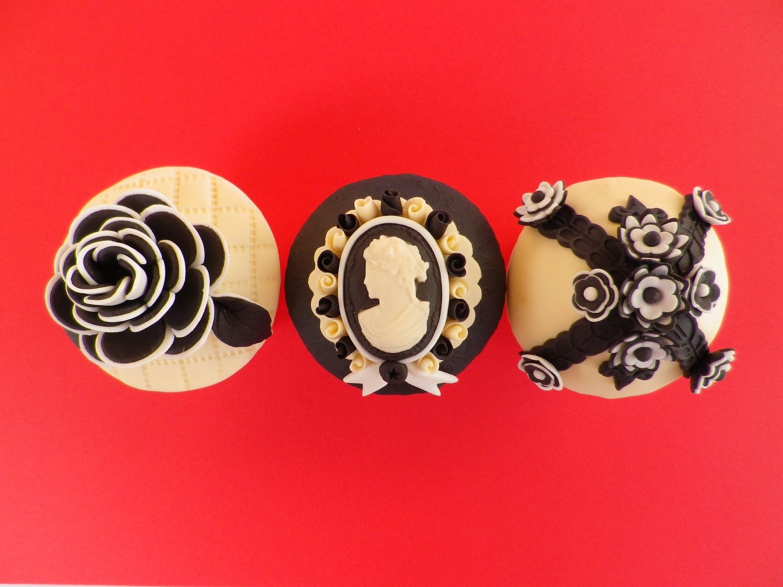 Todo empezó hace dos semanas cuando después de hacer una flor a dos tonos inspirada en una foto del libro Cupcakes, Cookies and Macarons de Patricia Arribálzaga, se me ocurrió preparar un trío que hiciese juego. Una semana después hice un camafeo a dos tonos pensando en la flor de antes, y por fin hoy me he sentado delante de la flor y el camafeo para conseguir inspiración y terminar el trabajo.